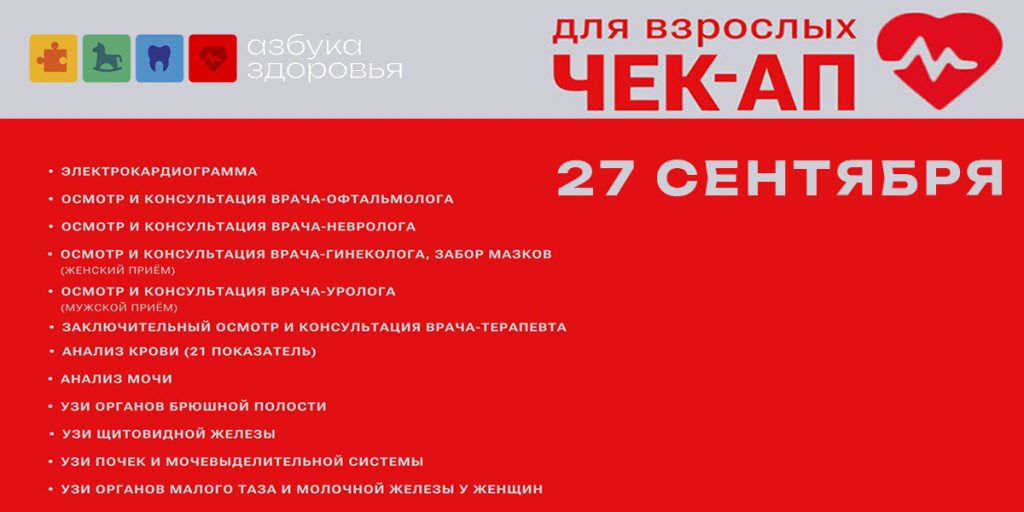27 сентября Чек-Ап для взрослых в Медицинском Центре "Азбука Здоровья"