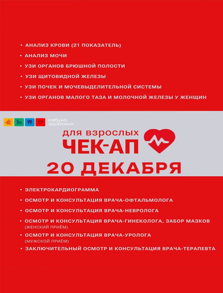 20 декабря Чек-Ап для взрослых в Медицинском Центре "Азбука Здоровья"